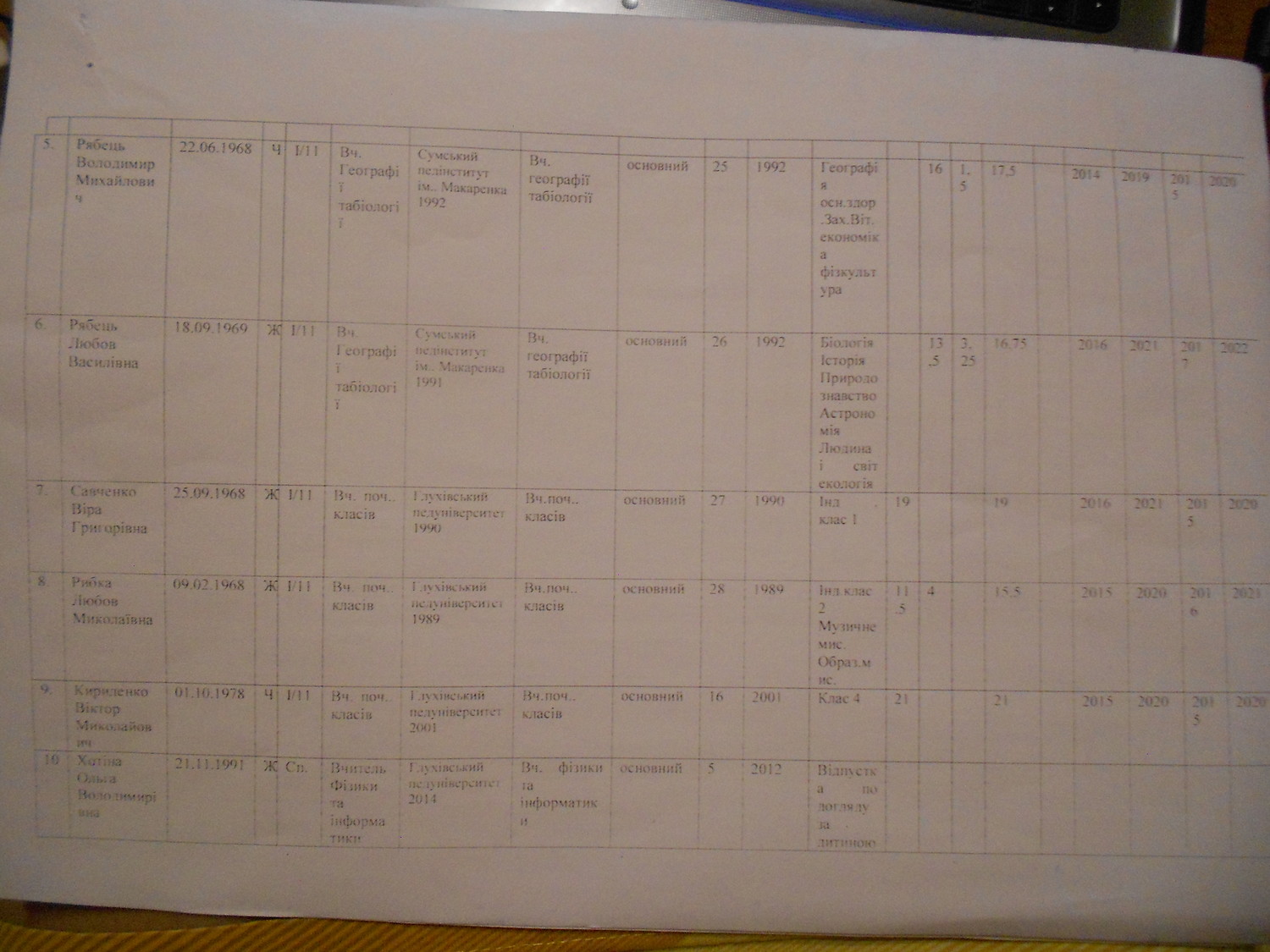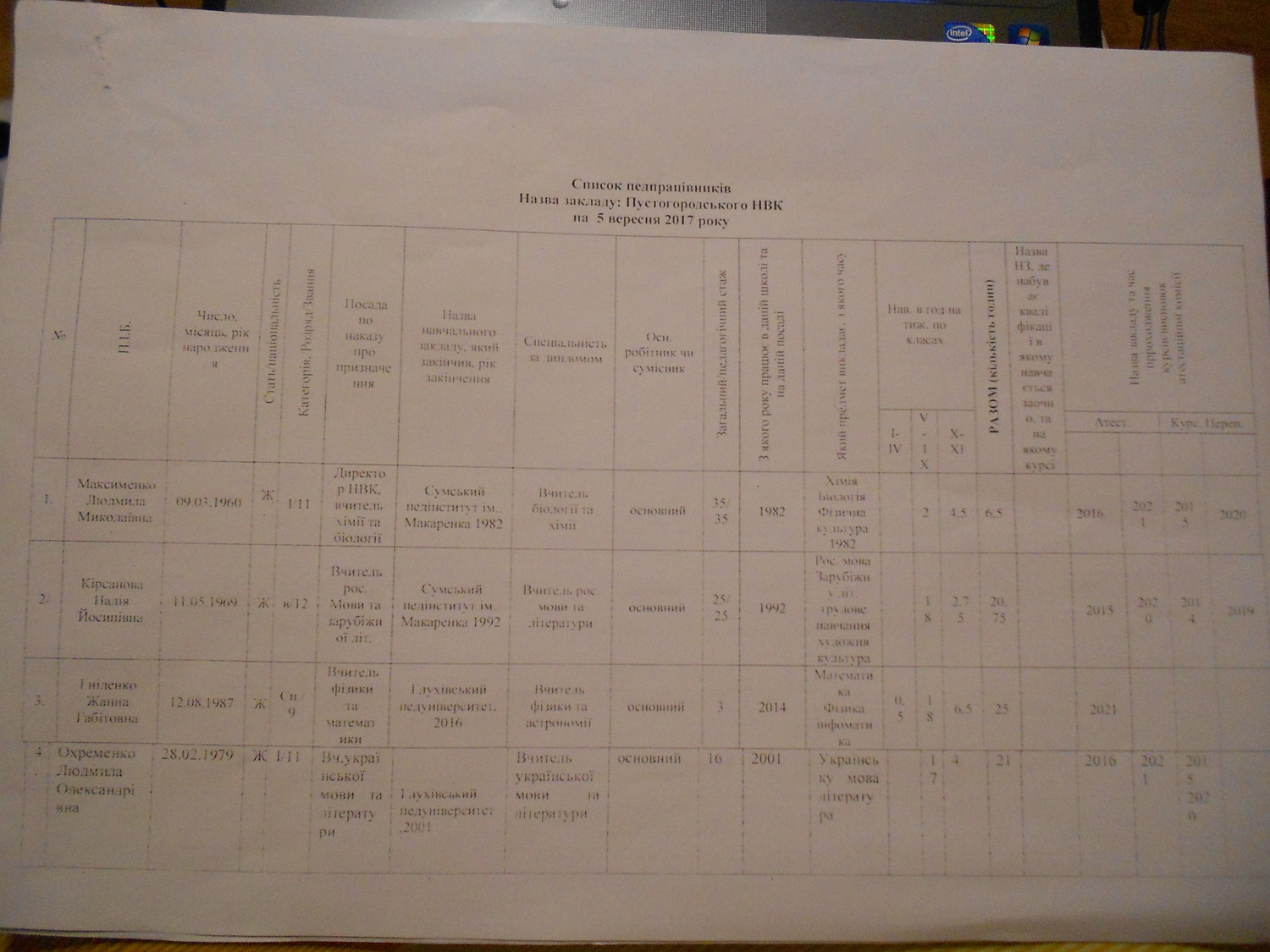 Кадровий склад закладу освіти згідно з ліцензійними умовами