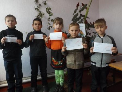 Наступна зупинка на станції «Казкова». Тут учасники гри зустрілися з казковими героями, провели вікторину «Відгадай героя» , інсценізували уривки улюблених казок. Третя зупинка відбулася на станції «Поетична», де діти спробували себе у ролі поетів, розповіли про відомих українських письменників. Далі чекала дітей зупинка на станції «Мовна», на якій діти розповіли крилаті вислови про мову як найдорожчий скарб українського народу, відгадали кросворди, ребуси. На станції «Українознавча» діти виступили в ролі дикторів телебачення, розповідаючи про державні символи та рослини-символи України, також стали учасниками флеш-мобу «Україна – велика незалежна держава Європи». Підсумком гри стала зупинка на станції «Бібліотечна», де діти ознайомилися з новинками дитячої літератури. Вчителі провели бесіду під гаслом «Читання – це віконце, через яке діти бачать, пізнають світ і самих себе» В. Сухомлинського. | |